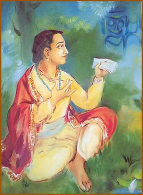 Opis czasów Jakieś 300 lat przed pojawieniem się Śri Caitanyi Mahaprabhu pojawił się w Bengalu Śri Jayadeva Goswami. W tamtych czasach Bengalem rządził król Balal-sen. Przed dynastią Senów, przez 7 pokoleń rządziła inna dynastia, która przyjęła buddyzm. Wszyscy królowie stali się wtedy buddystami, a gdy ktokolwiek chciał powiedzieć cokolwiek innego, zamykano mu usta oferując jakieś ważne stanowisko lub wyganiano go z królestwa. Tak więc wszyscy wokół mówili: mani-padme, mani-padme. Gdy nastała dynastia Senów, dziadek Balal-sena liznął gdzieś trochę filozofii advaita-vada, zainspirował się nią i wyrzucił buddystów z kraju. Oczywiście, nie głosił nic specjalnie innego od nich, chociaż mogło mu się tak wydawać. Balal-sen wychowywał się więc pod wpływem tej filozofii, a jednocześnie za jego czasów w Bengalu urośli w siłę wielbiciele Śakti. W całym Bengalu zaczęto praktykować tantrę, czyli mniej więcej to samo, co się dzieje w nocnych klubach: tj. kobiety, alkohol oraz inne używki. Jedyna różnica polegała na tym, że odbywało się to w imię religii. A król Balal-sen całkowicie był tym oczarowany. Synem Bala-sena był Lakszman-sen. Gdy był on młodym chłopakiem, strzelał z łuku z jednej strony Gangesu na drugą. Był doskonałym łucznikiem, a oprócz tego studiował muzykę, taniec, Wedy, mantry oraz ogólnie – był ekspertem we wszystkim, co robił. Pewnego razu król Balal-sena zniknął z pałacu i przez jakieś cztery miesiące nikt nie wiedział, gdzie się podziewa. Krążyła jedynie plotka, że król jest gdzieś niedaleko, że praktykuje medytację po drugiej stronie Gangesu. Któregoś dnia, młody książę Lakszman-sen postanowił to sprawdzić. Przepłynął Ganges wpław i faktycznie ujrzał tam swojego ojca, ale w bardzo szokującej sytuacji. Król Balal-sen, pod pozorem praktykowania tantry, dokonywał rytualnej kąpieli jakiejś młodej kobiety w alkoholu. Na ten widok Lakszman-senowi pękło serce i wskoczył do Gangesu, aby skończyć ze swoim życiem. Jednak Ganga nie pozwoliła mu zginąć i fale wyniosły go na brzeg. Lakszman-sen miał wkrótce zostać ważnym asystentem pewnego wielkiego Vaisnavy w jego wielkiej misji. Załamany Lakszman-sen wrócił do pałacu, zwołał ministrów i zrelacjonował im, jak bardzo zdegradował się jego ojciec. Chociaż obowiązkiem króla jest ochrona zasad religijnych, to Balal-sen stoczył się tak haniebnie! Lakszman-sen ogłosił więc, że odchodzi, aby przyjąć wyrzeczony porządek życia, sannyasę. Ministrowie sprzeciwili się jednak temu pomysłowi i rzekli: ― Książę, w takiej sytuacji, to ty powinieneś przejąć teraz rządy, a my chętnie zostaniemy twoimi doradcami. Pozbądźmy się tego bezużytecznego Balal-sena! Gdy taki plan działania został już przez wszystkich zatwierdzony, ministrowie udali się do Balal-sena i zażądali, by przekazał władzę swojemu synowi. ― O, Balal-senie, jeśli chcesz iść do piekła, to idź, ale pozostaw kraj, abyśmy mogli nadal nim kierować dla dobra wszystkich obywateli. Balal-sen przystał na tę propozycję bez oporu, gdyż – jak powiedział, interesowały go jedynie kobiety, alkohol i ryby. W ten sposób, następnym królem Bengalu miał zostać jego syn, książę Lakszman-sen. Lakszman-sen poznaje Jayadevę Pewnego razu, jeszcze przed koronacją, książę Lakszman-sen opuścił swoją stolicę i udał się nad rzekę Ajay. I tam, w okolicy wsi Kendubilva, miał poznać młodego, niezwykle interesującego człowieka, w którego życiu miał odegrać bardzo ważną rolę. Gdy jednego dnia Lakszman-sen ćwiczył strzelanie z łuku, zdarzyła się rzecz bardzo niezwykła. Strzała wystrzelona w kierunku wielkiego banyanowego drzewa, nie doleciała do celu, ani nie spadła też na ziemię, lecz zawisła w powietrzu i tańczyła, niczym igła kompasu. Pod tym drzewem siedział młody człowiek, który wyglądał jak gdyby nie jadł i nie kąpał się od bardzo dawna. Był niezwykle wychudzony, a spod jego wpół przymkniętych powiek płynęły potoki łez. Będąc całkowicie nieświadomym zewnętrznego świata, śpiewał jakąś pieśń, w rytm której tańczyła strzała Lakszman-sena. Ten widok zdumiał Lakszman-sena bardzo. Usiadł niepodal i zaczął się temu młodzieńcowi uważnie przyglądać. W pewnej chwili, człowiek ten zerwał się nagle i zawołał: ― O, mój Panie! O, mój Panie! ― po czym upadł nieprzytomny na ziemię. Dla wykształconego i zaznajomionego z naukami Śrimad-Bhagavatam Lakszman-sena było oczywiste, że ten wychudzony młodzieniec pogrążony był w jakimś ekstatycznym transie. Po jakimś czasie zarzucił go sobie na plecy i zaniósł do chatki, jaką sobie niedawno wybudował. Przez długi jeszcze czas, ten młody człowiek pozostawał nieprzytomny. Czasami tylko wykrzykiwał: ― Kryszna! Kryszna! Kryszna! ― Wtedy Lakszman-sen odpowiadał mu: ― Tak, tak. Kryszna już zaraz tu będzie. Obudź się wreszcie! Czasami, gdy wydawało się, że ten młodzieniec przestawał oddychać, Lakszman-sen przystawiał mu strzępek bawełny do nosa, aby sprawdzić, czy on jeszcze oddycha i spryskiwał jego twarz wodą, wymieszaną z papką sandałową. Czasami też, ciało tego człowieka wyginało się łuk, lub przyjmowało inną nienaturalną pozycję i zastygało tak na długie godziny. Lakszman-sen podkładał mu wtedy różne poduszki. Czasami jednak wydawało się, że jego normalna świadomość powraca i pytał wtedy: ― Czy widziałeś mojego Krysznę? ― wtedy Lakszman-sen odpowiadał: ― Tak, tak, widziałem Go. Kryszna zaraz tu będzie. ― Widziałeś Go?! ― wykrzyknął młody człowiek ― A mnie znowu nie udało się Go zobaczyć! ― i stracił przytomność ponownie. Po jakimś czasie znów się zerwał i zaczął do kogoś przemawiać: ― Nie, nie, nie! Kryszna nigdy tak nie postępuje! Tak naprawdę, to Kryszna cię kocha, uwierz mi! ― K